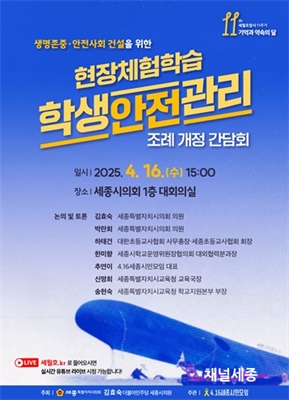 Á¶·ÊÁ¦Á¤°£´ãȸ À¥ÀÚº¸¼¼¿ùÈ£Âü»ç 11Áֱ⸦ ¸Â¾Æ 'ÇöÀåüÇèÇнÀ Çлý¾ÈÀü°ü¸®Áö¿øÁ¶·Ê' °³Á¤À» À§ÇÑ °£´ãȸ¸¦ °³ÃÖÇÕ´Ï´Ù.Çб³ ÇöÀåÀÇ ÇöÀåüÇèÇнÀÀÌ À§ÃàµÈ °¡¿îµ¥ ...