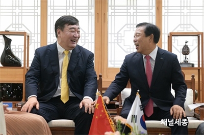 220708_½ÌÇÏÀ̹ÖÁÖÇÑÁß±¹´ë»çÁ¢°ßÃÖ¹ÎÈ£ ¼¼Á¾Æ¯º°ÀÚÄ¡½ÃÀåÀÌ 28ÀÏ ½Ãû Á¢°ß½Ç¿¡¼ ½ÌÇÏÀ̹Ö(û®úÙ¥) ÁÖÇÑ Áß±¹´ë»çÀÇ ¿¹¹æÀ» ¹Þ°í ÇÑÁß Áö¹æÁ¤ºÎ °£ ¿ìÈ£ÁõÁø°ú...