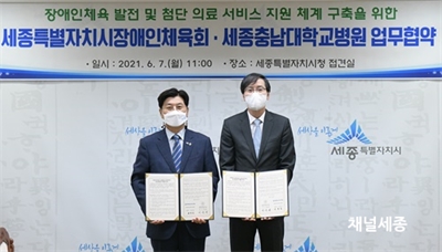¼¼Á¾½ÃÀå¾ÖÀÎüÀ°È¸-¼¼Á¾Ãæ³²´ëº´¿øÇù¾à¼¼Á¾Æ¯º°ÀÚÄ¡½Ã Àå¾ÖÀÎüÀ°È¸(ȸÀå ÀÌÃáÈñ)¿Í ¼¼Á¾Ãæ³²´ëÇб³º´¿ø(¿øÀå ³ª¿ë±æ)°¡ ¼ÕÀ» Àâ°í Àå¾ÖÀΠüÀ° »ç¾÷ ÃßÁø ¹× Àå¾ÖÀÎ ...