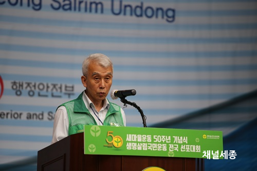 Á¤¼¼±Õ ±¹¹«ÃѸ®´Â ¡°50ÁÖ³âÀ» ¸ÂÀº »õ¸¶À»¿îµ¿Àº ´ë´ãÇÑ º¯È­¿Í ÀÚ±âÇõ½Å±æÀ» °È°í ÀÖ´Ù¡±¶ó¸ç ¡°±âÈÄÀ§±â, »ýÅÂ°è ÆÄ±«¸¦ ±Øº¹Çϰí ÀÚ¿¬°ú Àΰ£ÀÌ ¾î¿ï·Á »ç´Â ¼¼»óÀ» ¸¸µé±â À§ÇÑ »ý¸í»ì¸²±¹¹Î¿îµ¿À¸·Î ¾ÕÀ¸·Î 50³âÀÌ Áö³ª 100Áֳ⠱â³ä½Ä¿¡¼­ º¯È­¿Í Çõ½ÅÀÇ ¼ÒÁßÇÑ °á½ÇÀ» ³ª´©±â¸¦ Èñ¸ÁÇÑ´Ù¡±¸ç »õ¸¶À» ȸ¿øµéÀ» °Ý·ÁÇß´Ù.