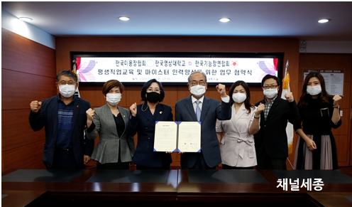 Çѱ¹¿µ»ó´ëÇб³(ÃÑÀå À¯Àç¿ø)°¡ Áö³­ 25ÀÏ ´ëÇÐ º»°ü¿¡¼­ (»ç)Çѱ¹±â´ÉÀ忬ÇÕȸ¡¤(»ç)Çѱ¹¹Ì¿ëÀåÇùȸ(ÀÌ»çÀå ¾î¼ö¿¬)¿Í ¡®Æò»ýÁ÷¾÷±³À° ¹× ¸¶À̽ºÅÍ Àη ¾ç¼ºÀ» À§ÇÑ MOU¡¯¸¦ ü°áÇß´Ù°í 28ÀÏ ¹àÇû´Ù.