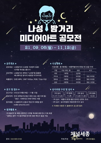 ¼¼Á¾Æ¯º°ÀÚÄ¡½Ã(½ÃÀå ÀÌÃáÈñ)°¡ ³ª¼ºµ¿ Á߽ɻó¾÷Áö¿ªÀ» ĪÇÏ´Â ³ª¼º¹ã°Å¸®ÀÇ Ä³¸¯ÅÍ ¡®³ª°úÀ塯À» ÀÌ¿ëÇÑ ¹Ìµð¾î¾ÆÆ® ÄÜÅÙÃ÷¸¦ ¿À´Â 11¿ù 12ÀϱîÁö °ø¸ðÇÑ´Ù.
