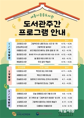 µµ¼­°ü ÁÖ°£ È«º¸ÀÚ·á(½Ã¸³µµ¼­°ü)¼¼Á¾Æ¯º°ÀÚÄ¡½Ã °ø°øµµ¼­°üÀÌ ¿À´Â 12ÀϺÎÅÍ 18ÀϱîÁö µµ¼­°ü ÁÖ°£À» ¸Â¾Æ ½Ã¹ÎÀ» ´ë»óÀ¸·Î Àü½Ã‧üÇè‧±³...