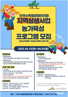 Çѱ¹¼ö¸ñ¿øÁ¤¿ø°ü¸®¿ø, Áö¿ª ³ó°¡ µ¿¹Ý¼ºÀåÀ» À§ÇÑ ³ó°¡À°¼º ÇÁ·Î±×·¥ Âü°¡ÀÚ ¸ðÁý