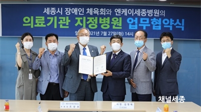 Çù¾à½Ä(üÀ°ÁøÈï°ú)¼¼Á¾Æ¯º°ÀÚÄ¡½Ã Àå¾ÖÀÎüÀ°È¸(ȸÀå ÀÌÃáÈñ)°¡ ¿£ÄÉÀ̼¼Á¾º´¿ø(ÀÌ»çÀå ±è¿µÁ¦)°ú ¼ÕÀ» Àâ°í Àå¾ÖÀΠüÀ°»ç¾÷ ÃßÁø ¹× Àå¾ÖÀÎ °Ç°ÁõÁø¿¡ »óÈ£ Çù·Â...