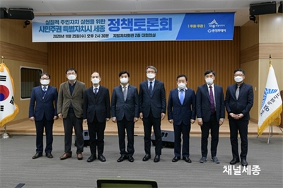 Á¤Ã¥Åä·Ðȸ¼¼Á¾Æ¯º°ÀÚÄ¡½Ã(½ÃÀå ÀÌÃáÈñ)°¡ ÃæÃ»Åõµ¥ÀÌ(»çÀå ¼º±â¼±)¿Í °øµ¿À¸·Î 25ÀÏ Áö¹æÀÚġȸ°ü¿¡¼ ¡®½Ã¹ÎÁÖ±Ç Æ¯º°ÀÚÄ¡½Ã ¼¼Á¾°ú ÁÖ¹ÎÀÚÄ¡ÀÇ ¹æÇ⡯À» ÁÖÁ¦·Î Á¤...