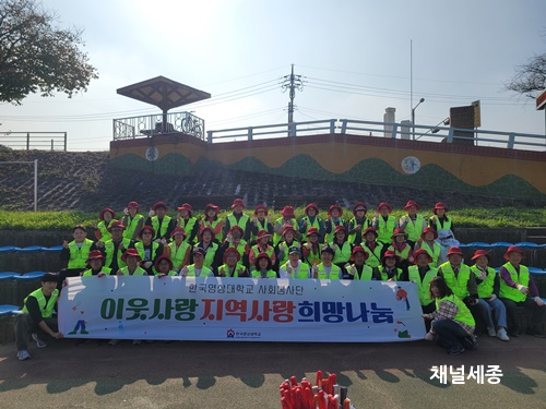 ¡à Çѱ¹¿µ»ó´ëÇб³ »çȸºÀ»ç´ÜÀº ¼¼Á¾½Ã Á¶Ä¡¿øÀ¾ Á¶Ãµº¯ ÀÏ¿ø¿¡¼­ ¼¼Á¾½ÃÀÚ¿øºÀ»ç¼¾ÅÍ¿Í È¯°æÁ¤È­ Ȱµ¿À» ÁøÇàÇß´Ù. Çѱ¹¿µ»ó´ë ºÀ»çÀÚ 20¿© ¸í°ú ¼¼Á¾½ÃÀÚ¿øºÀ»ç¼¾ÅÍ ºÀ»çÀÚ°¡ Âü¿©ÇÑ °¡¿îµ¥ ÆîÃÄÁø À̳¯ Ȱµ¿Àº õº¯ ÁÖÂ÷Àå°ú ÅëÇà·Î µîÀ» Áß½ÉÀ¸·Î ¾²·¹±â ¼ö°Å‧¹è¼ö·Î Á¤¸® µîÀ» ½Ç½ÃÇß´Ù.