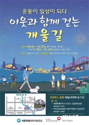 2019³â ÀÌ¿ô°ú ÇÔ²² °È´Â °³¿ï±æ È«º¸ ¾È³»¹®¼¼Á¾Æ¯º°ÀÚÄ¡½Ã º¸°Ç¼Ò(¼ÒÀå ±Ç±Ù¿ë)°¡ 6¿ùºÎÅÍ 9¿ù±îÁö ¸ÅÁÖ È¡¤¸ñ¿äÀÏ Á¾Ã̵¿ ¾Æ·Î³»2±³ Àα٠Á¦Ãµ »êÃ¥±æ¿¡¼...