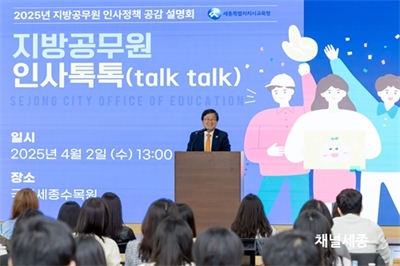 ¼¼Á¾½Ã±³À°Ã» ÀλçÁ¤Ã¥, ¼ÒÅë°ú °ø°¨À¸·Î º½±â¿î °¡µæ1¼¼Á¾Æ¯º°ÀÚÄ¡½Ã±³À°Ã»(±³À°°¨ ÃÖ±³Áø, ÀÌÇÏ ¼¼Á¾½Ã±³À°Ã»)Àº Áö³­ 3¿ù 31ÀÏ(¿ù)ºÎÅÍ ½Ã... [¼¼Á¾½Ã] ä³Î¼¼Á¾ 2025-04-03 ¿ÀÀü 10:05:41